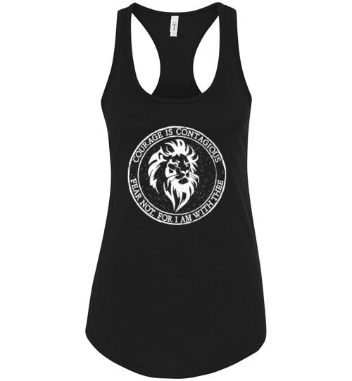 Ladies Racerback Tank - Courage Is Contagious - White Ink